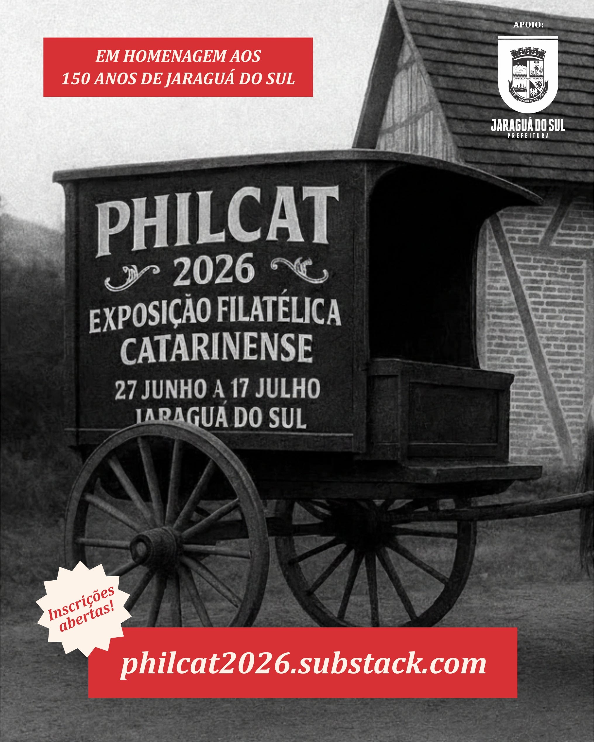 Estão abertas as inscrições para a PHILCAT 2026 – 11ª Exposição Filatélica Catarinense, exposição competitiva regional que reunirá colecionadores e estudiosos da filatelia em Jaraguá do Sul. O evento integra a programação oficial dos 150 anos do município e será realizado de 27 de junho a 17 de julho de 2026, no Museu Histórico Emílio da Silva, com entrada gratuita.